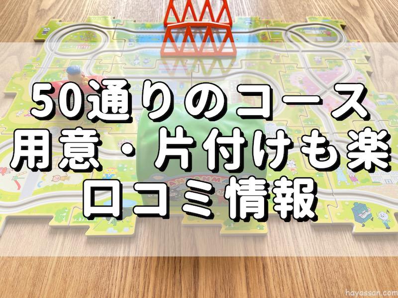 パネルを使って走らせるコースを作らないといけないのですが、コースを作るのも簡単で、適当にパネルを繋げてもコースになるので親の負担もそんなにない商品かなと思います^ ^